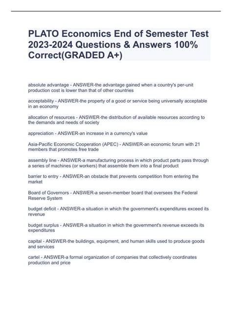 Free PDF PLATO ECONOMICS END OF SEMESTER TEST ANSWERS PDF